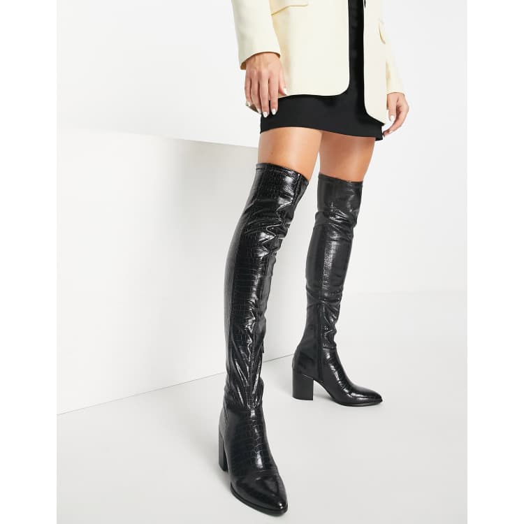 Steve Madden Jacey over the knee boot in black croc ASOS