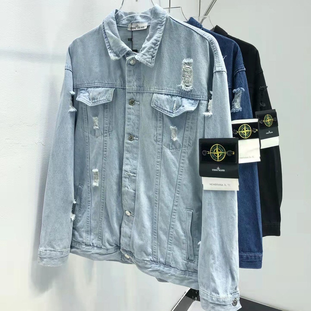 Stone island jean jacket clearance, Ready Stock Stone Island Denim Jacket Distressed Armband Jacket clearance