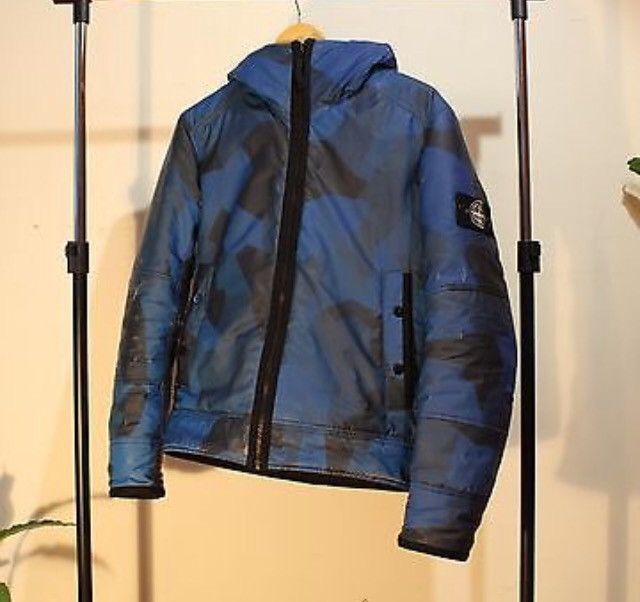 Stone Island Blue Fleece Lined Camo Reflective Jacket Medium