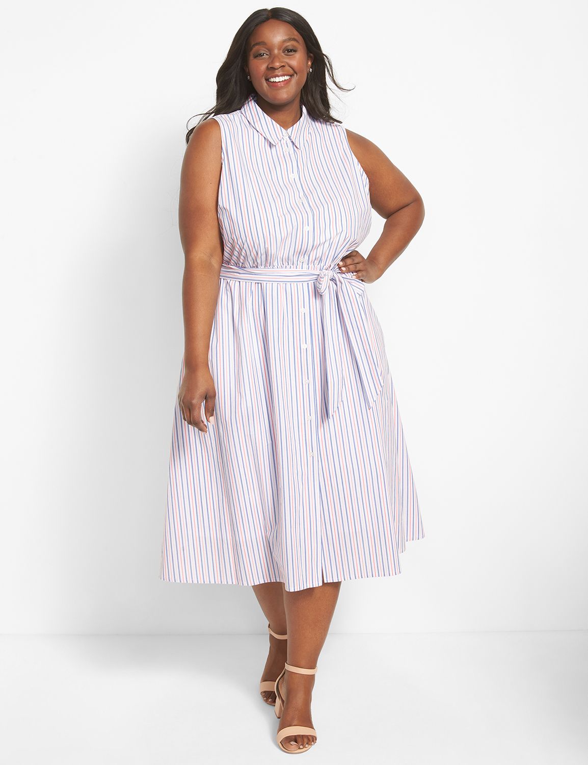 Sleeveless Striped Midi Shirtdress