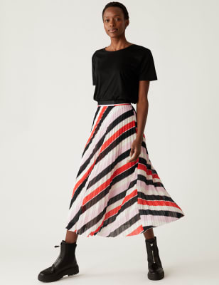 Striped red skirt clearance, Striped Pleated Midaxi Skirt clearance