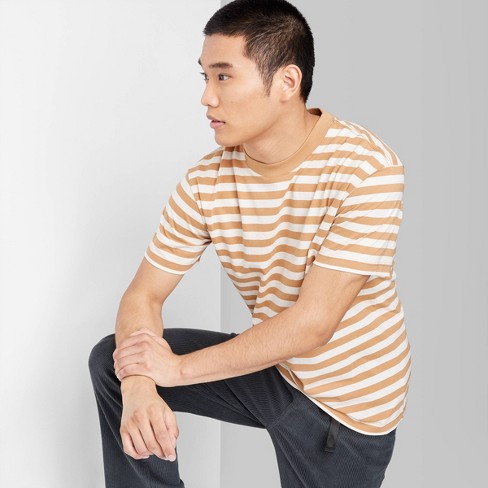 Men s Striped Short Sleeve Crewneck T shirt Original Use Tan