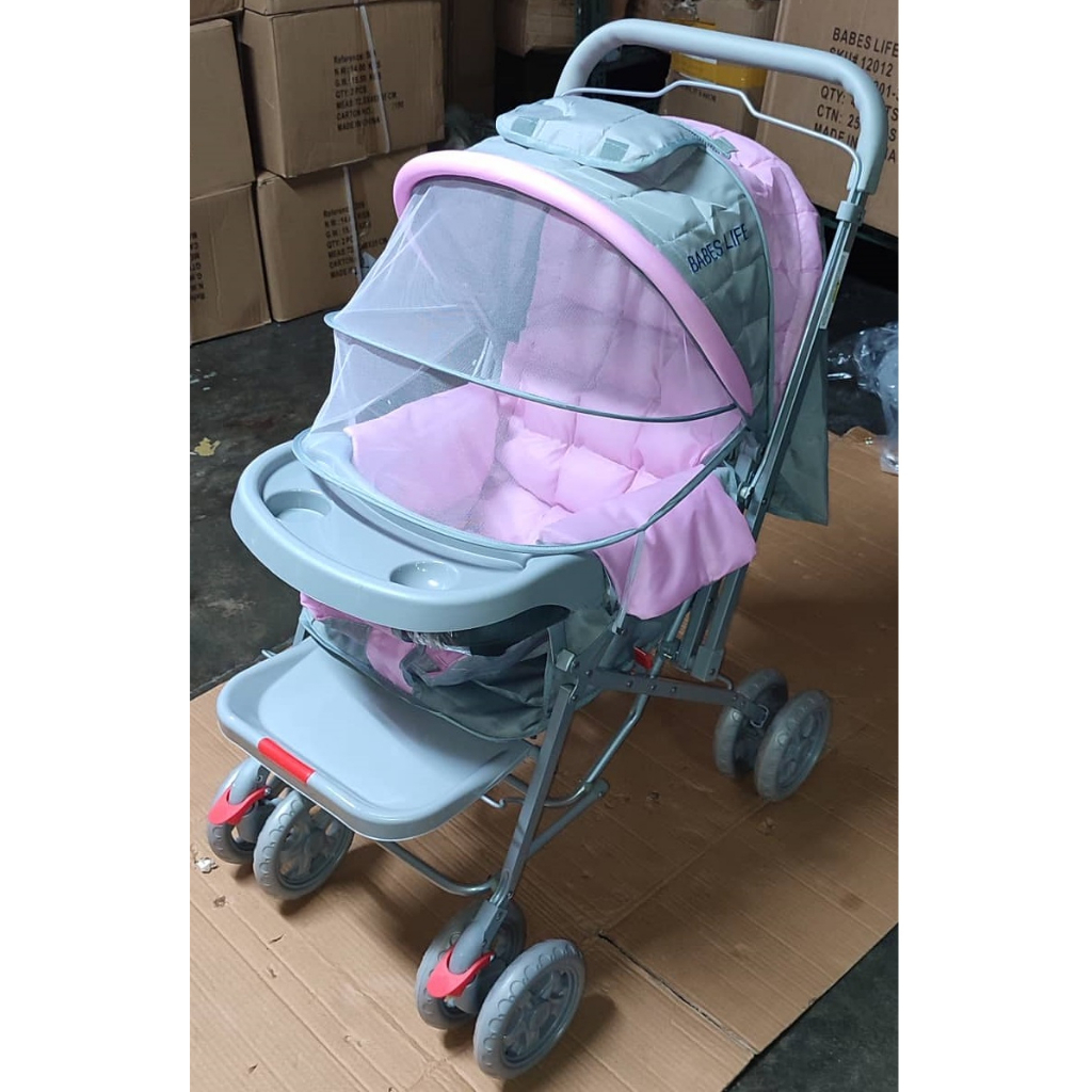 Stroller with movable handle clearance, brand new stroller with net and food tray reversible handle clearance
