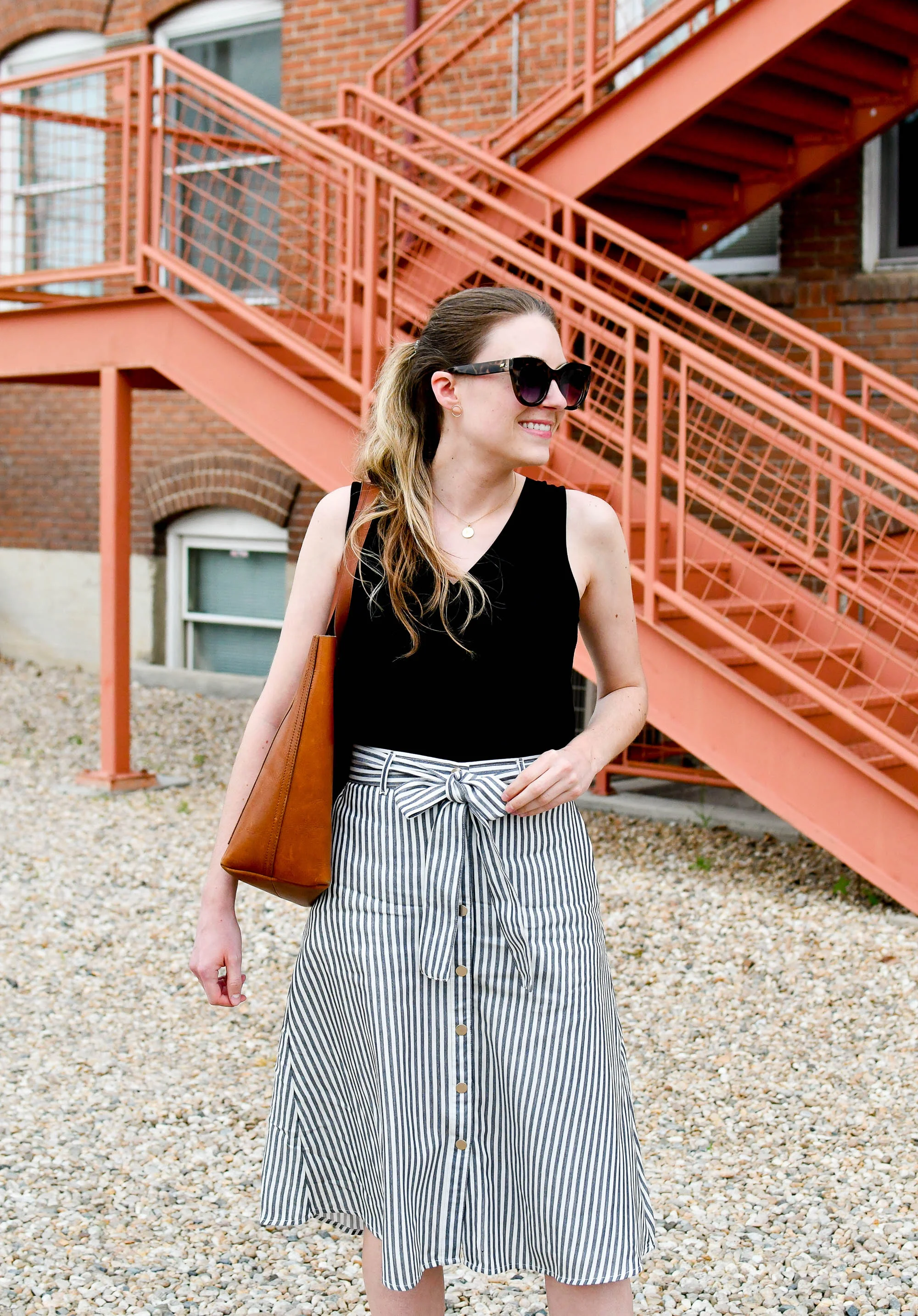 Green White Striped Tie Front Midi Skirt FINAL SALE Inherit Co