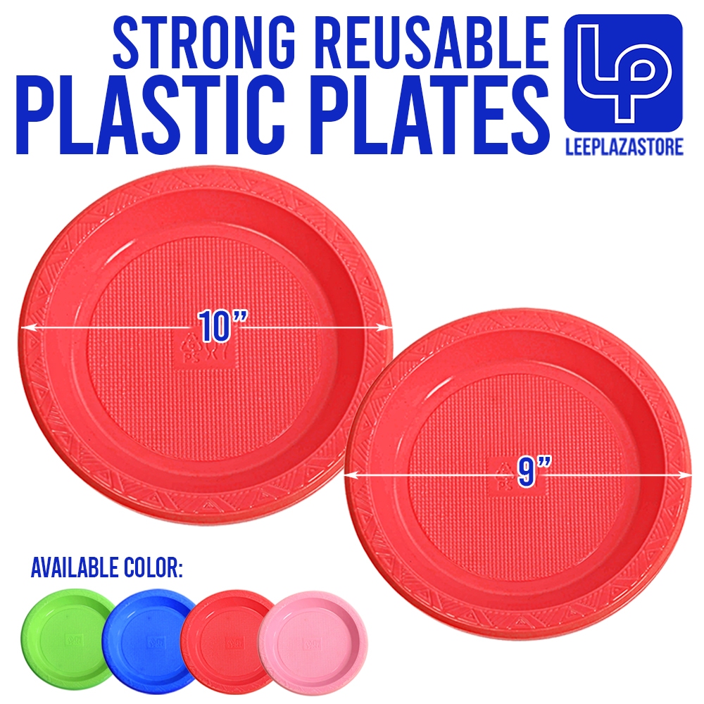 12 pcs Strong Reusable Round Plastic Plates 9 inches Shopee