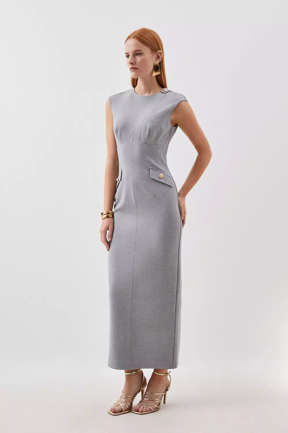 Structured Crepe Tailored Envelope Neck Pencil Midi Dress Karen Millen