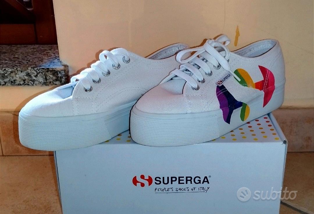 Superga bianche con logo multicolore Abbigliamento e Accessori