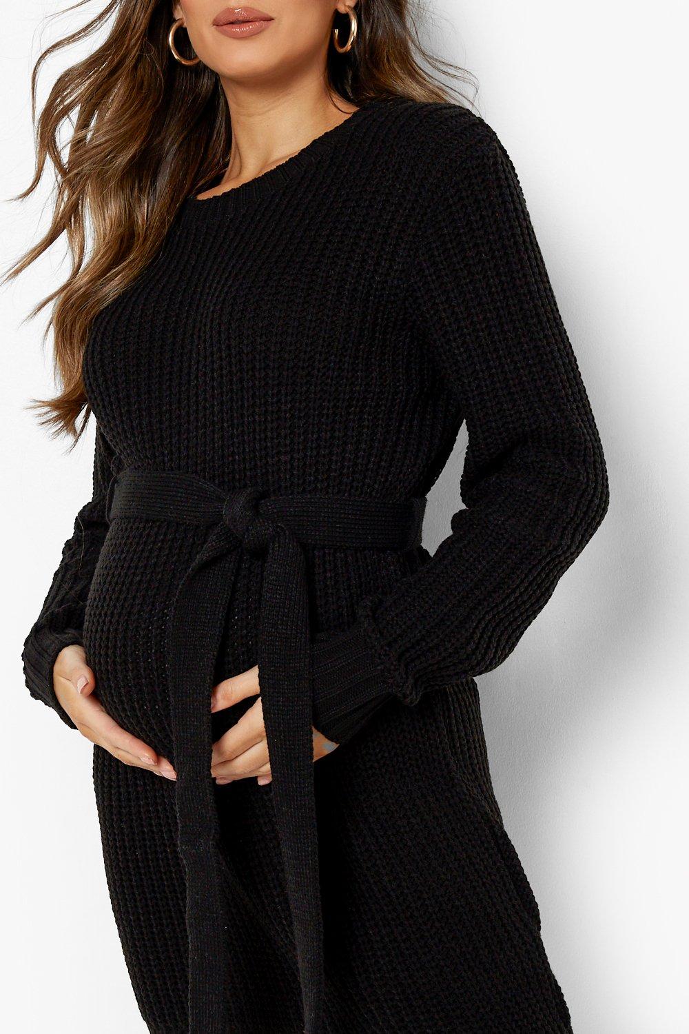 Maternity Soft Knit Tie Waist Sweater Dress boohoo