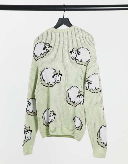 ASOS DESIGN oversized textured sweater with sheep design in sage