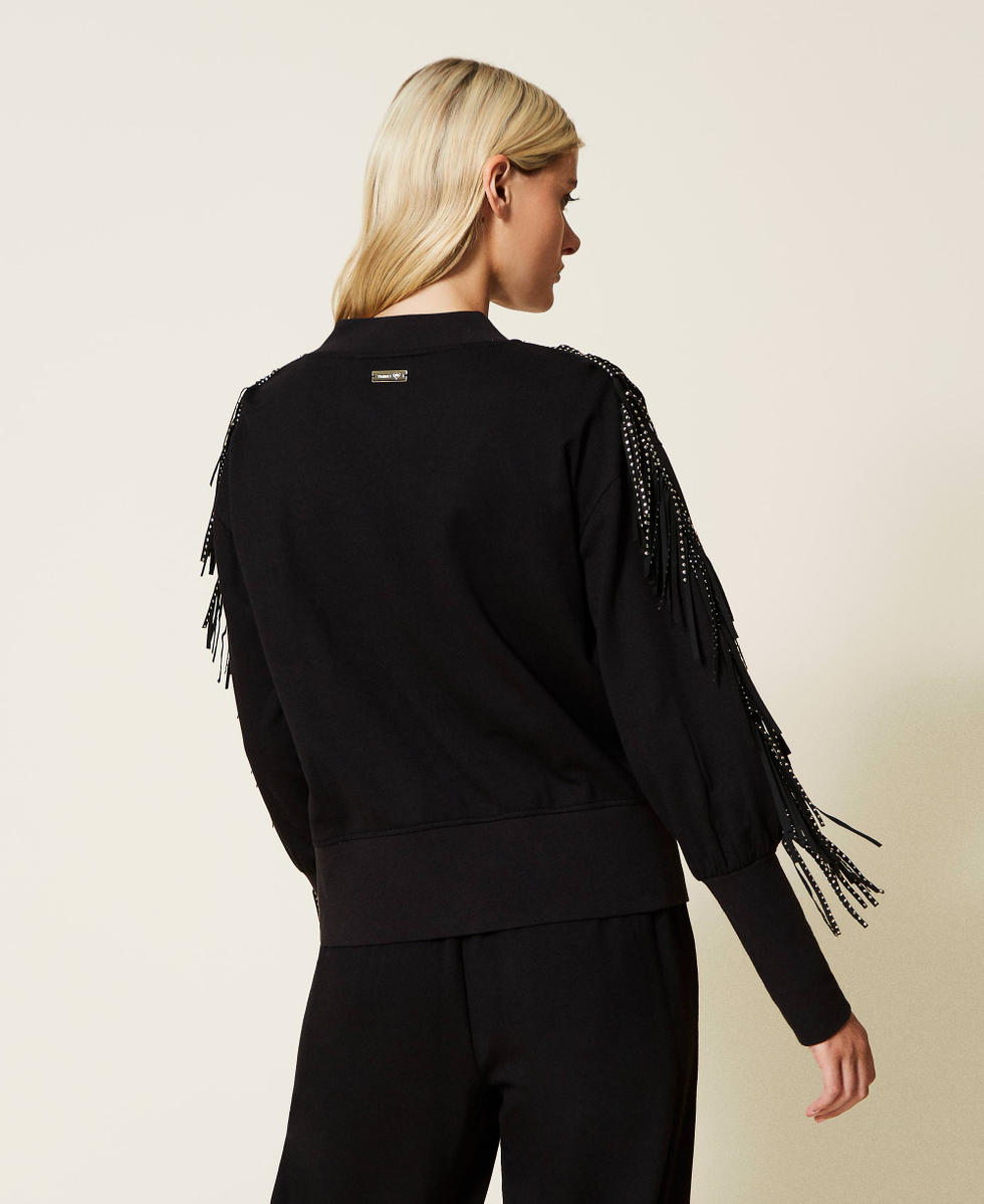 Bomber jacket like sweatshirt with fringes and studs Woman Black