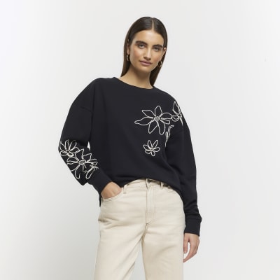 Sweatshirt with embroidered flowers clearance, Nike Embroidered Flower Hoodie Sweatshirt in Black Lyst clearance