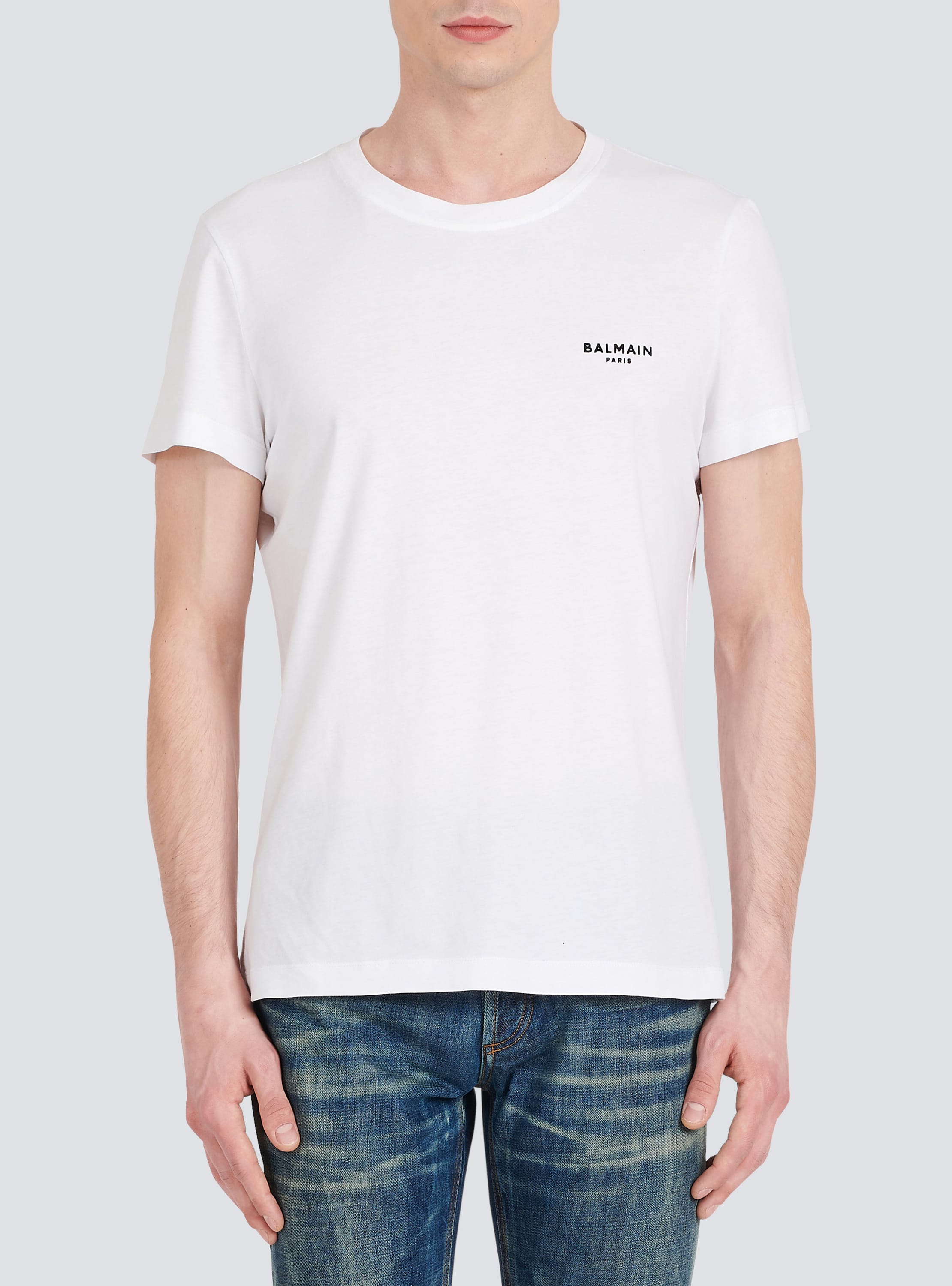 T shirt balmain blanc clearance, Flocked Balmain T shirt white Men BALMAIN clearance