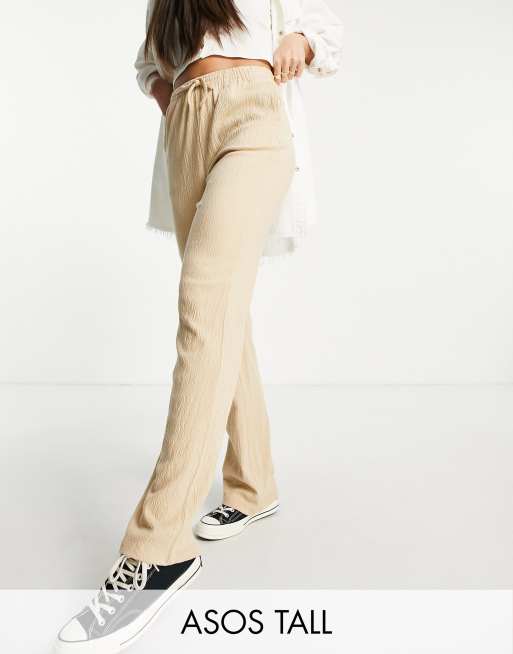 Tall straight leg pants clearance, ASOS DESIGN Tall straight leg pants in crinkle cotton jersey in neutral clearance