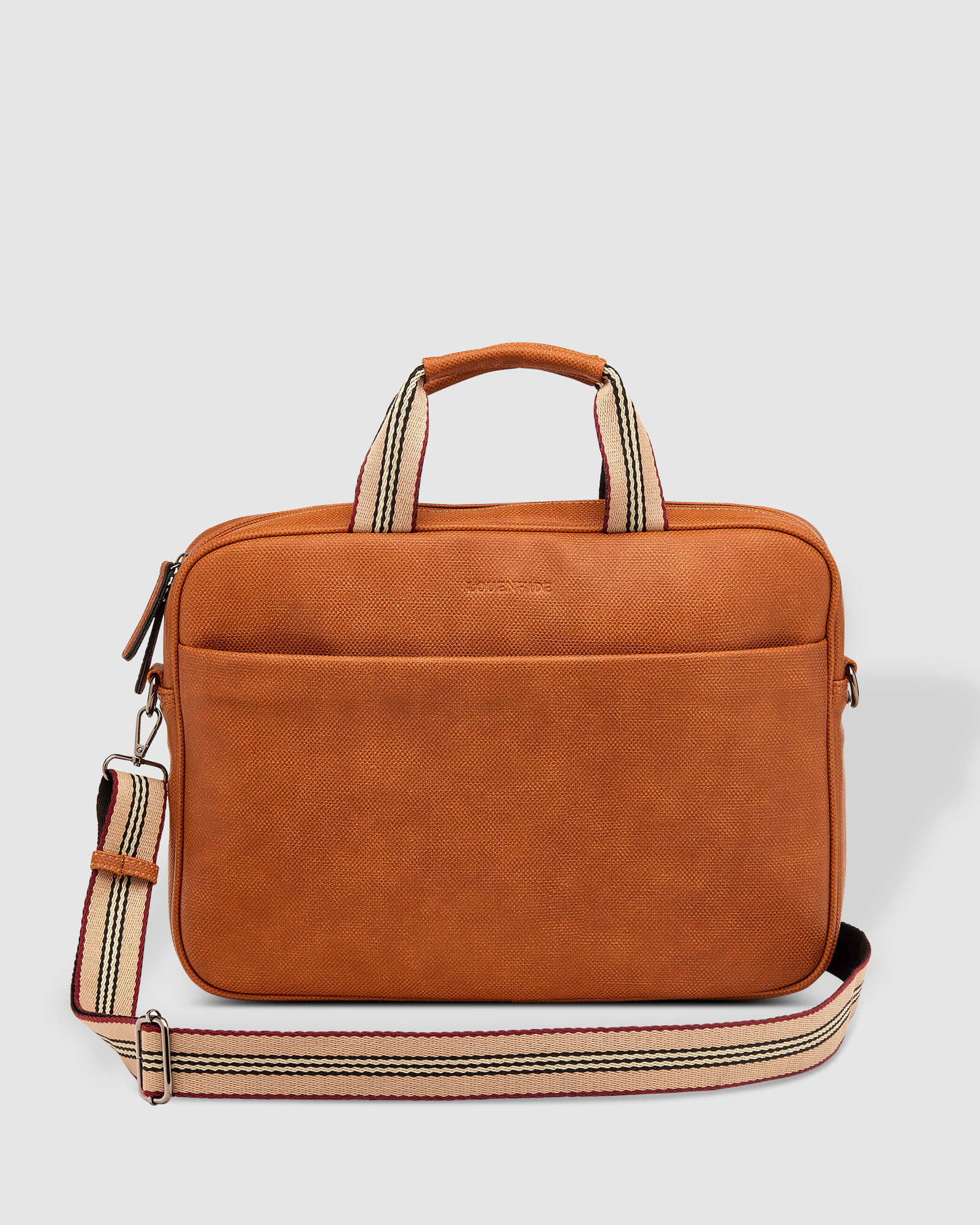 The Compass Leather Laptop Bag in tan OSPREY LONDON