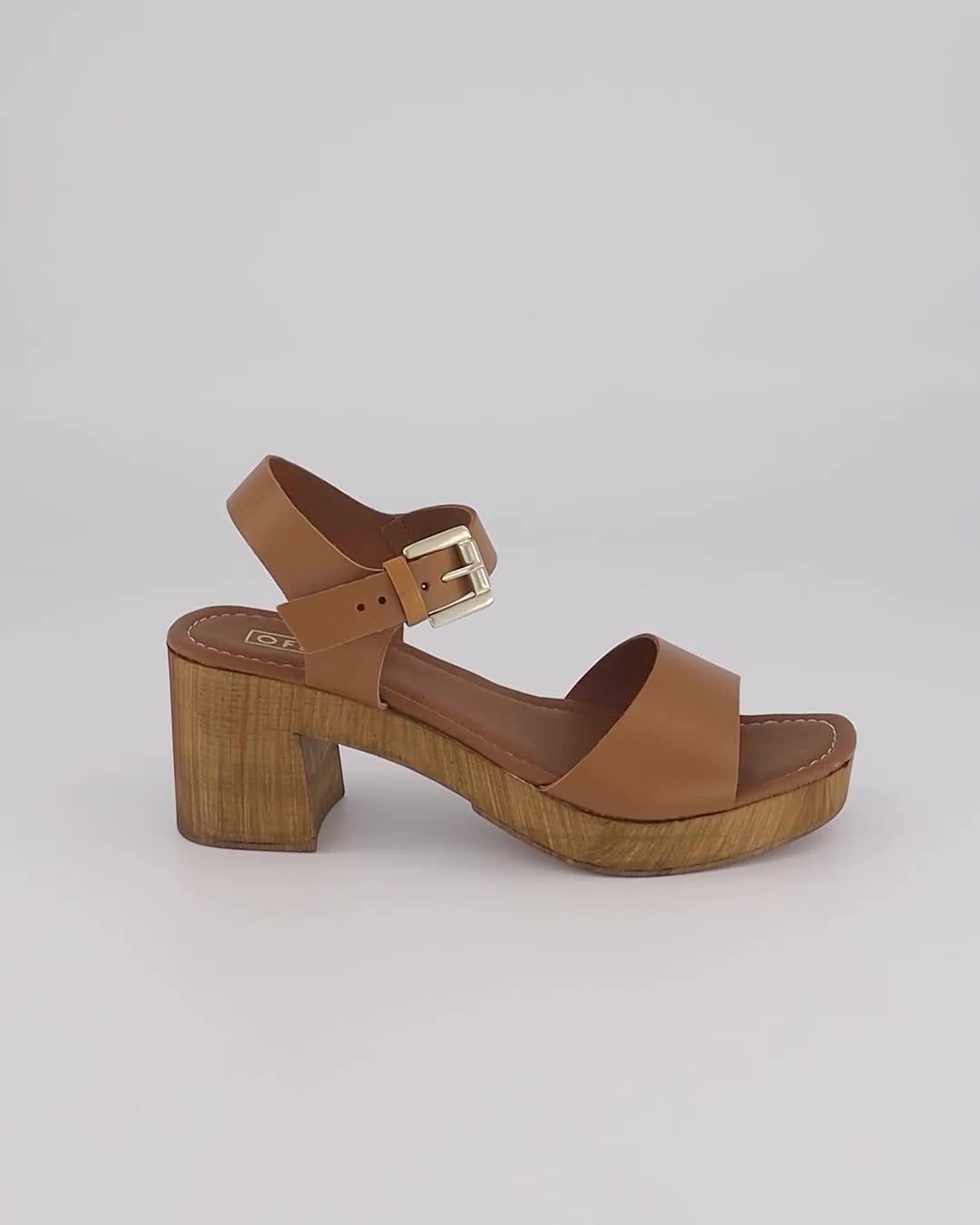 OFFICE Maeve Wood Effect Sandals Tan Leather Mid Heels
