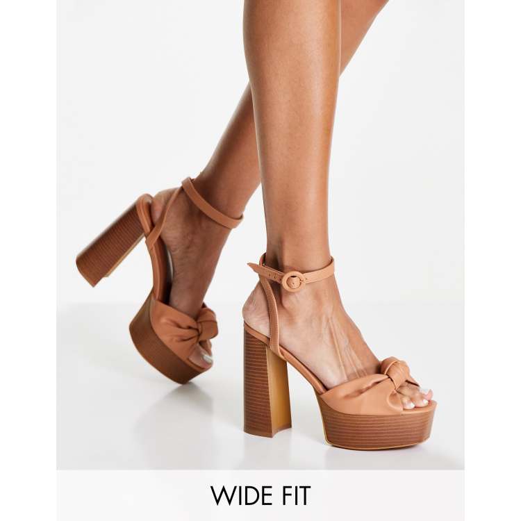 ASOS DESIGN Wide Fit Note knotted platform heeled sandals in tan