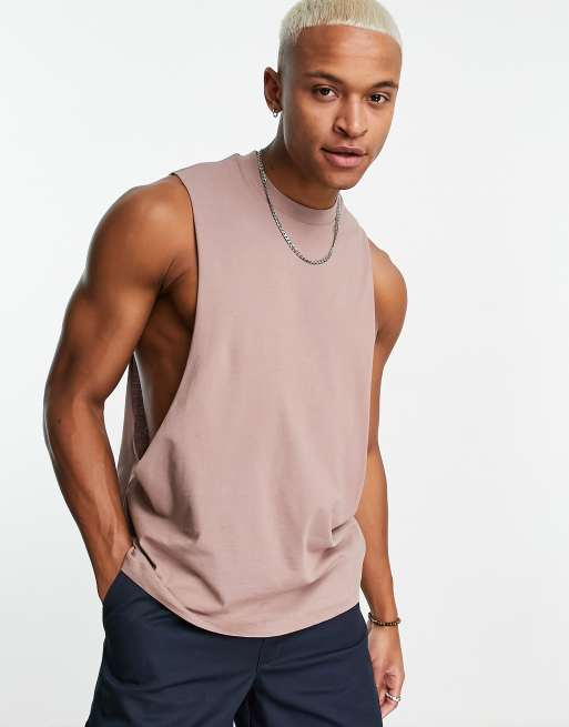 Tan sleeveless vest clearance, ASOS DESIGN relaxed fit vest with dropped armhole in tan ASOS clearance