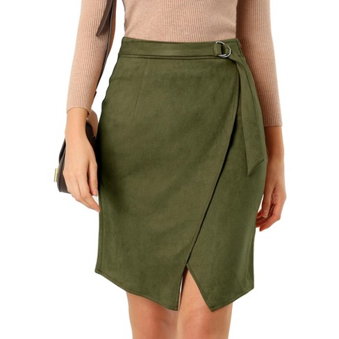 Allegra K Women s A line Knee Length Front Slit Wrap Faux Suede