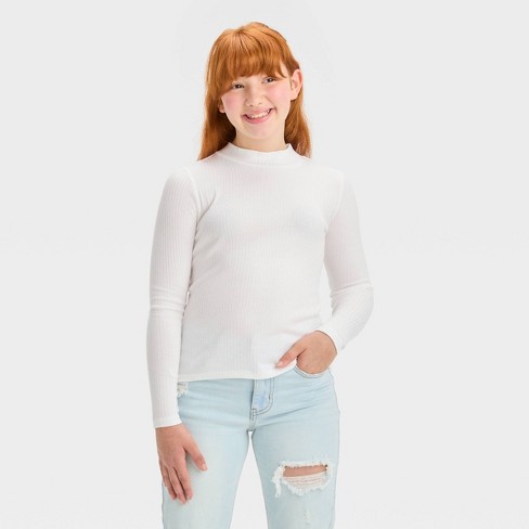 Girls Long Sleeve Rib knit Mock Neck Top Art Class White Xxl