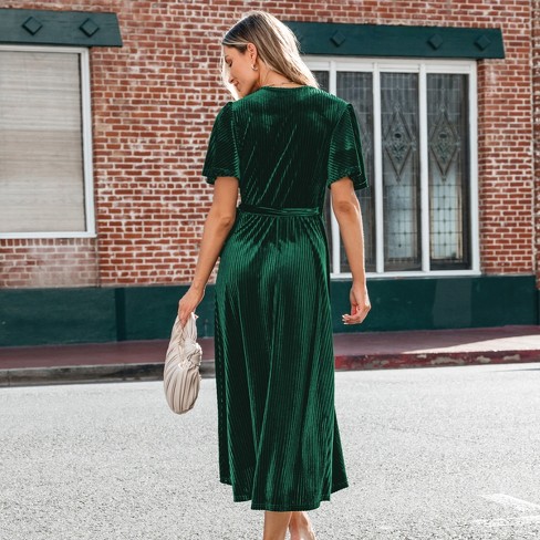 Women s Emerald Ribbed Velvet Belted Maxi Dress cupshe s green