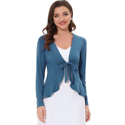Allegra K Women s Tie Front Ruffled Hem Long Sleeve Knit Cardigan