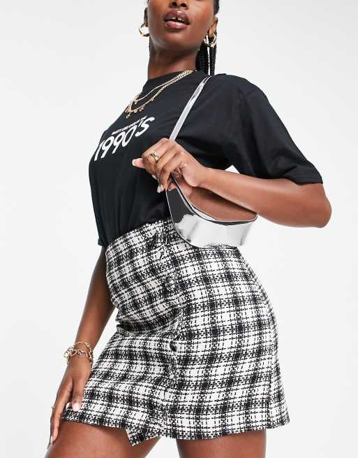 ASOS DESIGN boucle mini skirt with button detail in mono check