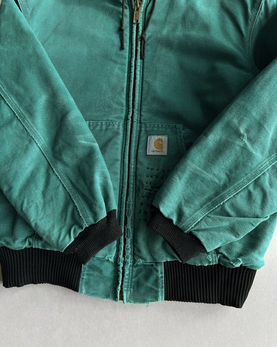 Vintage 90S TEAL GREEN CARHARTT SASHIKO HOODED WORK JACKET L
