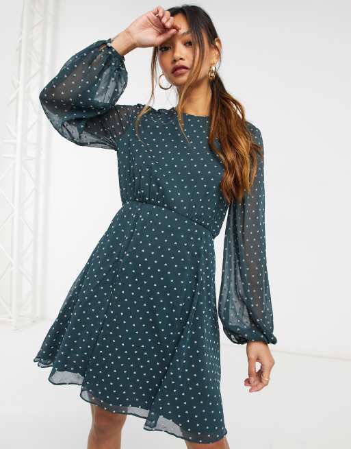 Ted Baker Kobie long sleeve heart print mini dress in dark green