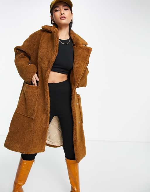 Teddy coat asos clearance, Selected Femme teddy coat with large pockets in tan clearance
