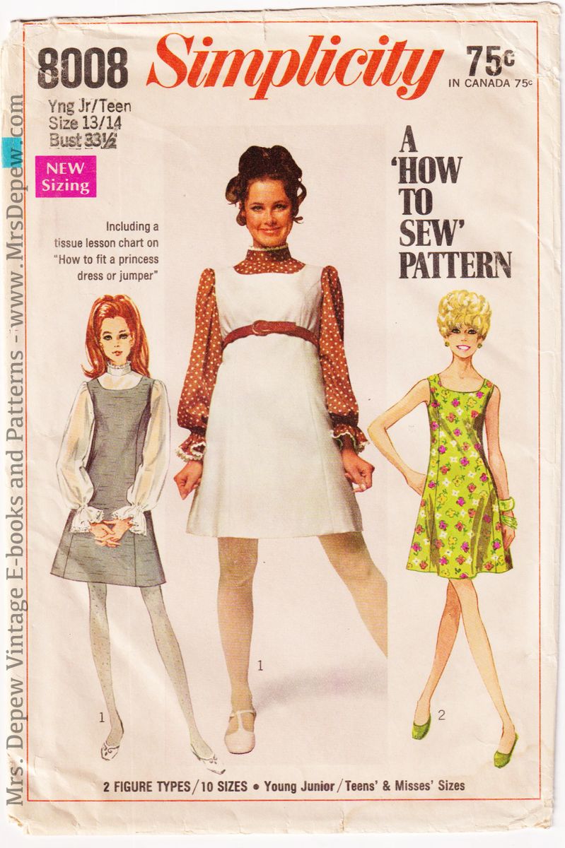 Vintage Sewing Pattern 1960s Teen Jumper Dress Simplicity 8008 33.5