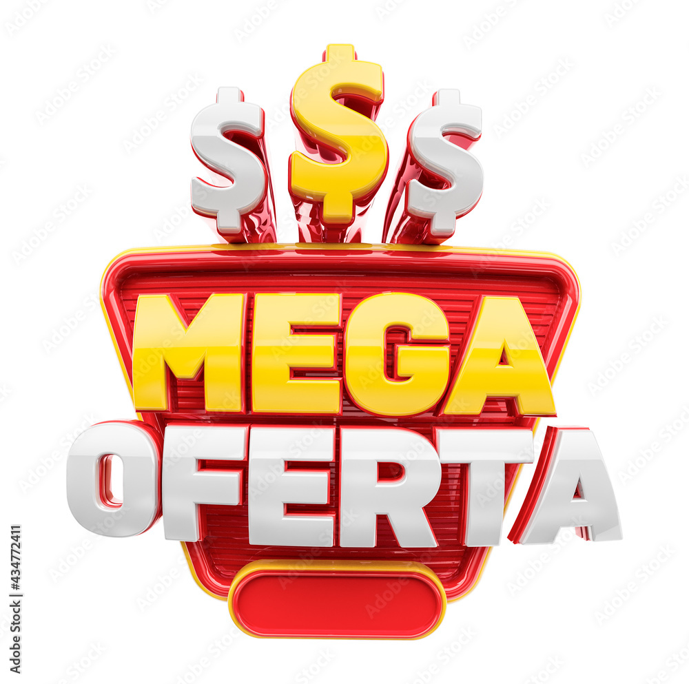 Label 3d render for campaign in Brazil. The phrase Mega Oferta