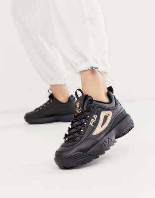 Zapatillas de deporte negras con detalles en dorado rosa Disruptor II de Fila