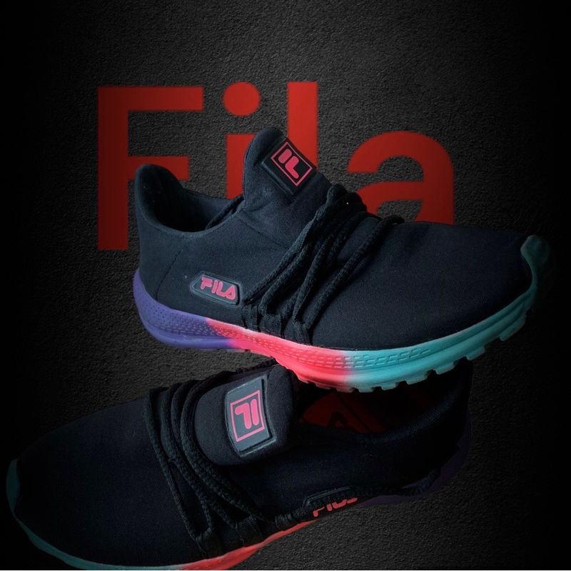 T nis Fila Feminino Original Preto Solado Borracha Colorida Tecido El stico Tamanho 37 T nis Feminino Fila Usado 87338226 enjoei