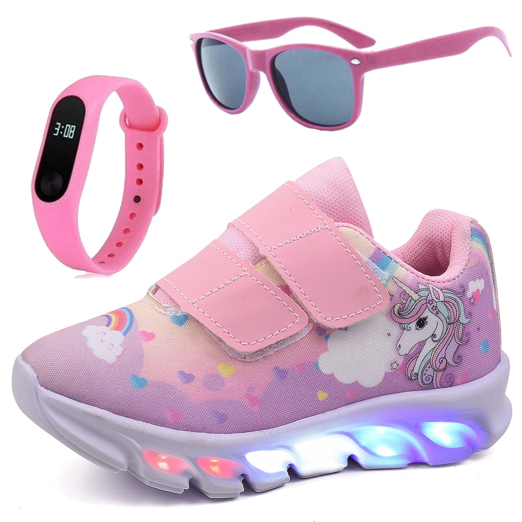 T nis Infantil Feminino de Led Unicornio Menina Rosa Tira Colante com culos e Rel gio Elis Magazine