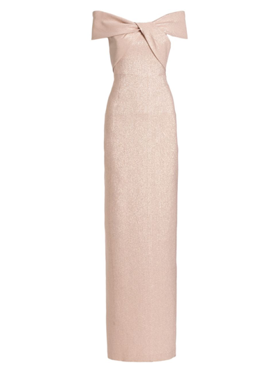 Teri Jon By Rickie Freeman Metallic Off the shoulder Gown In Ice