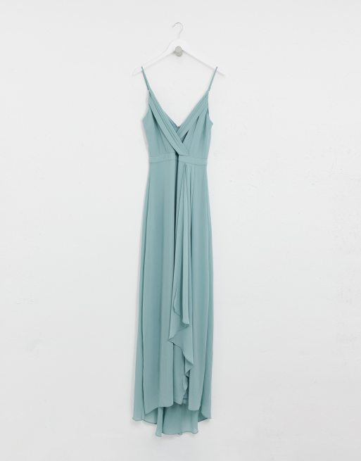 Bridesmaid exclusive cami wrap maxi dress with fishtail in sage clearance