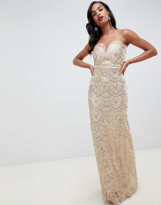 TFNC Plus Patterned Sequin Bandeau Maxi Dress In Gold 41 Asos
