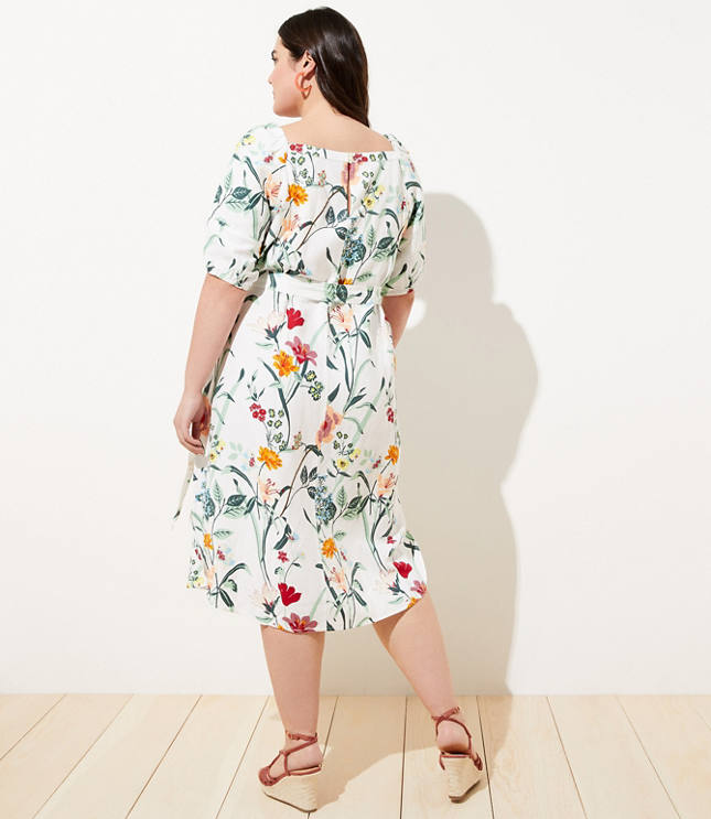 LOFT Plus Floral Puff Sleeve Pocket Midi Dress