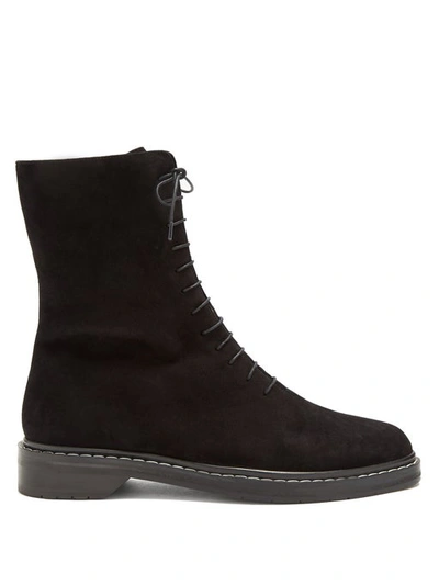 The Row Fara Lace up Suede Combat Boot Black ModeSens
