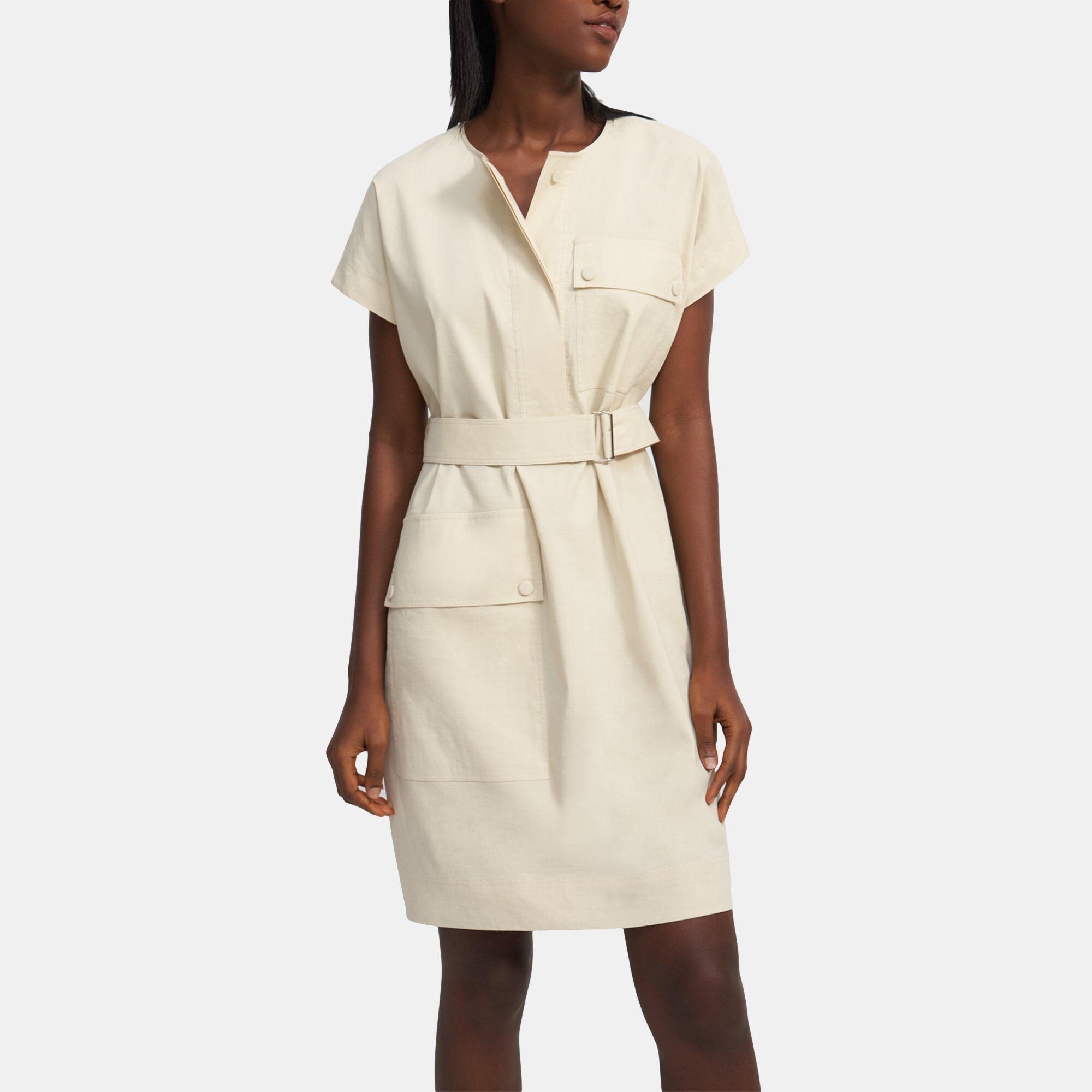 Theory Dress Crewneck Utility Dress in Stretch Linen Size 8 Beige