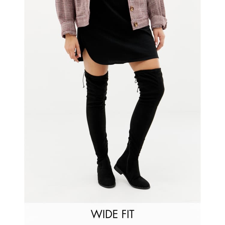 Thigh high boots large thighs clearance, ASOS DESIGN Wide Fit Extra Wide Leg kaska flat studded thigh clearance