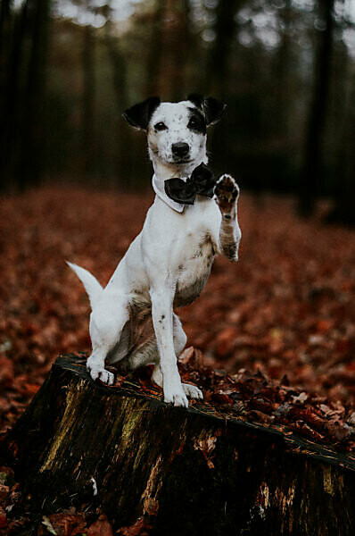 Bildagentur mauritius images Portrait Of Dog With Bow Tie