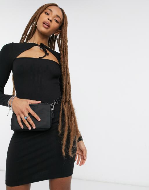 Rose Detail Halter Tie Neck Mini Dress Black Public Desire