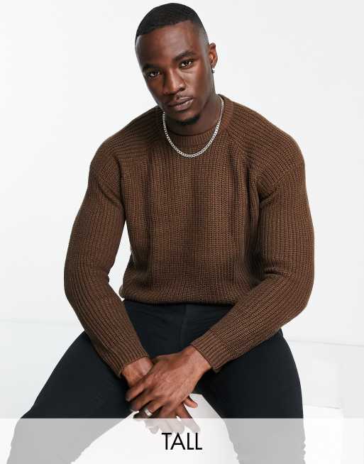 Threadbare Tall oversized heavy fisherman knit sweater in midnight brown
