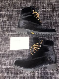 62781 auth OFF WHITE X TIMBERLAND black velvet Ankle Boots Shoes 37