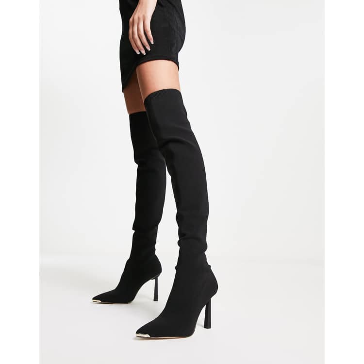 ALDO Crulla over the knee boots in black stretch knit ASOS