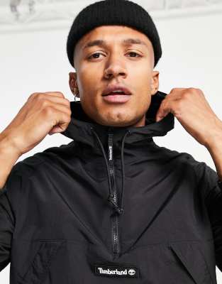Timberland overhead windbreaker jacket with hood in khaki and navy