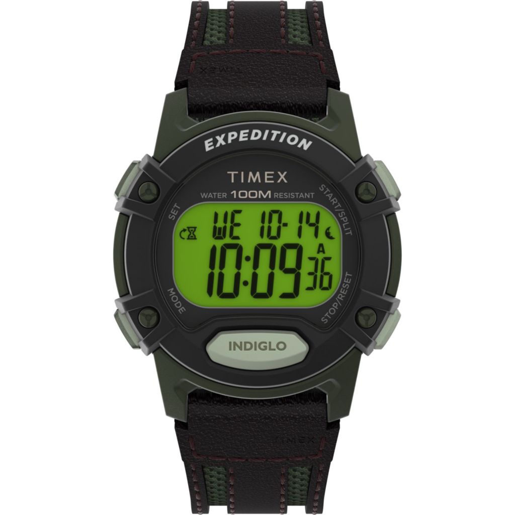 Timex led digital watch clearance, Timex Expedition CAT5 41mm Digital Leather Strap Watch ShopHQ clearance