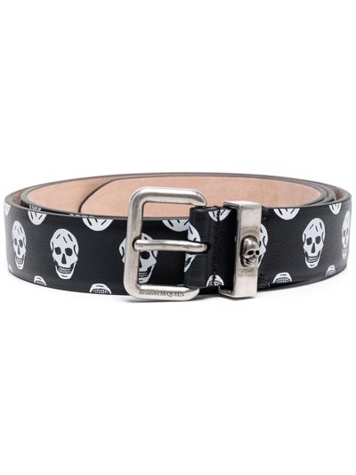 Alexander Mcqueen Skull print Leather Belt In Black ModeSens