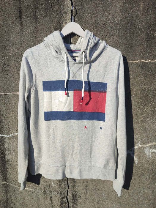 Tommy Hilfiger Jeans mens flags big logo white hoodie hooded sweater size S